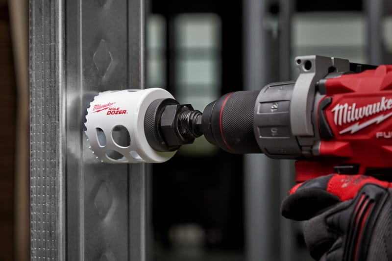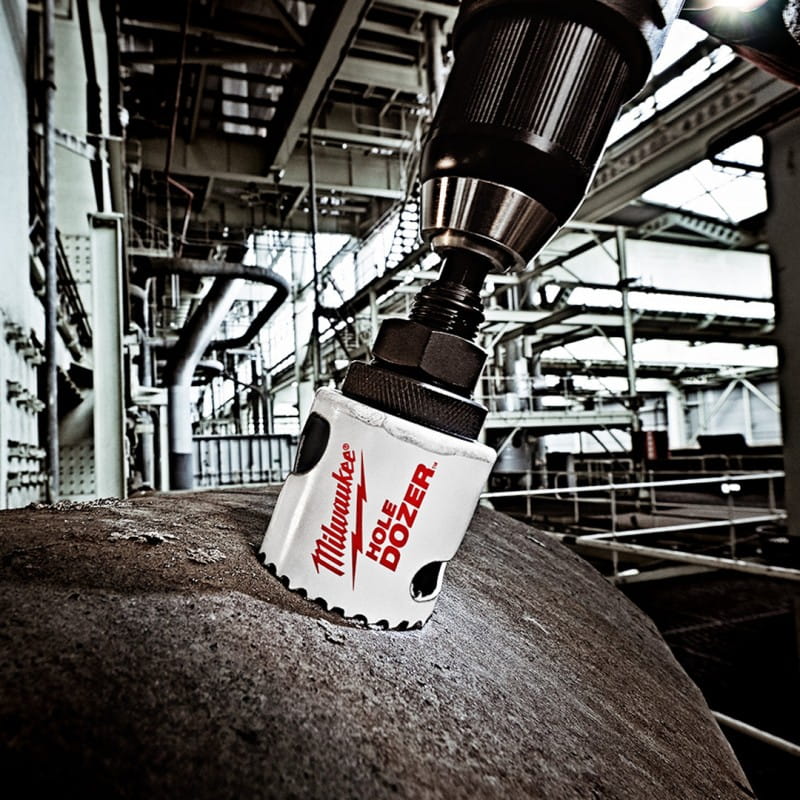 Bimetalowa otwornica Milwuakee nadaje się zarówno do maszyn ręcznych, jak i wiertarek stacjonarnych.