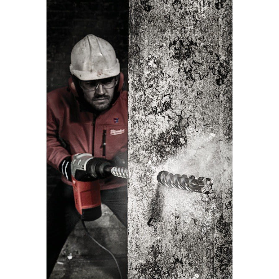 Specjalnie opracowana geometria z optymalnie symetryczną 4 x 90°, mocną głowicą ostrza węglikowego. Zmniejsza ryzyko zakleszczenia w przypadku natrafienia na pręt zbrojeniowy