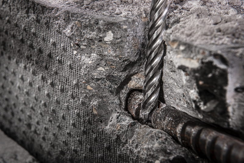 - Wierzchołek centrujący ułatwia rozpoczęcie wiercenia. Geometria widii 4x90° gwarantuje doskonale gładkie otwory oraz redukuje ryzyko zakleszczenia się wiertła przy natrafieniu na pręt zbrojeniowy.