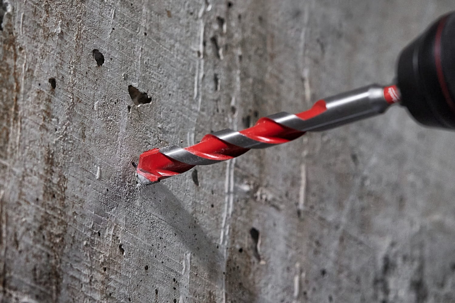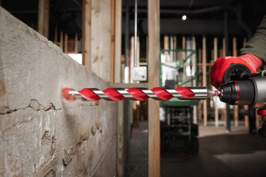- Wiertła z końcówką z węglika wolframu (TCT) umożliwiają wiercenie w betonie, bloczkach z gazobetonu, murze, łupkach i granicie.